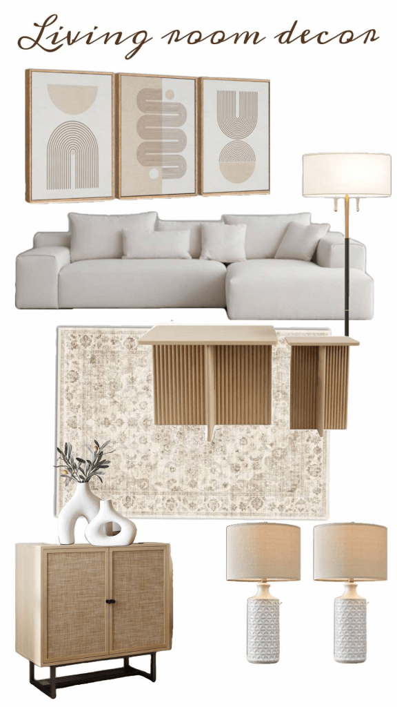 Achieve a refined and inviting living space with a thoughtfully curated balance of modern minimalism and timeless elegance. A beige modern sofa serves as the foundation, offering a neutral yet sophisticated base that exudes warmth and versatility.