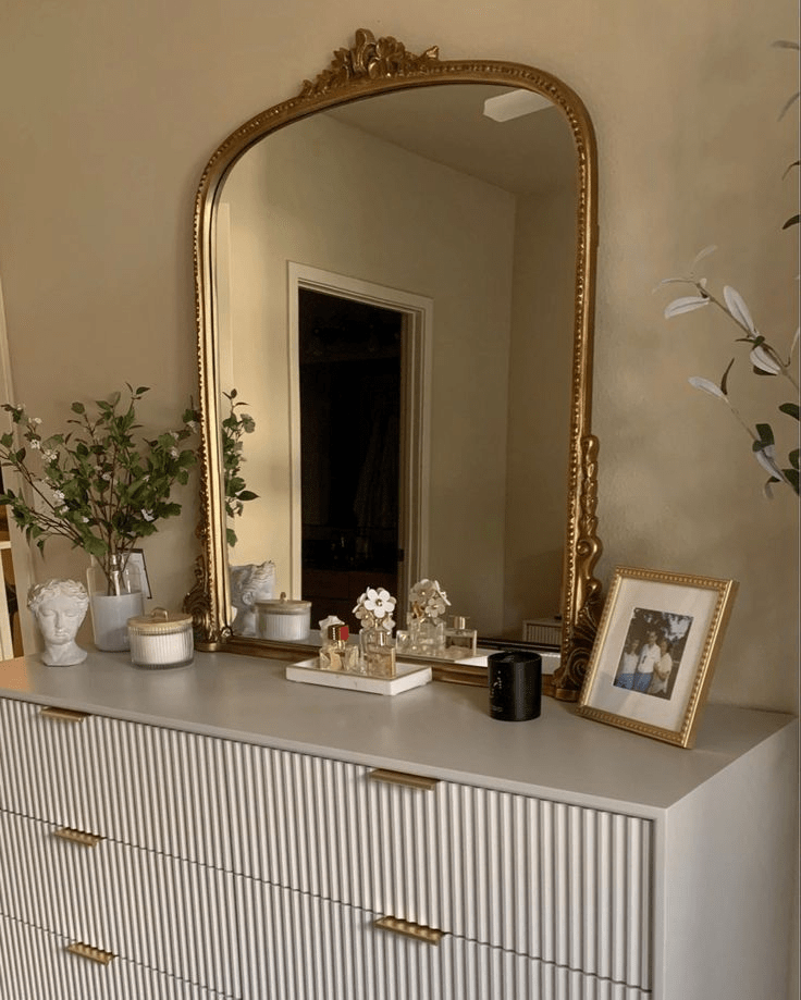 Nothing defines Parisian chic like a vintage, ornate gold-framed mirror. Leaned against a wall or hung above a fireplace, it creates the illusion of more space while adding an element of classic luxury. Its intricate detailing and antique finish bring character and refinement, making it a must-have in any Parisian-inspired home.