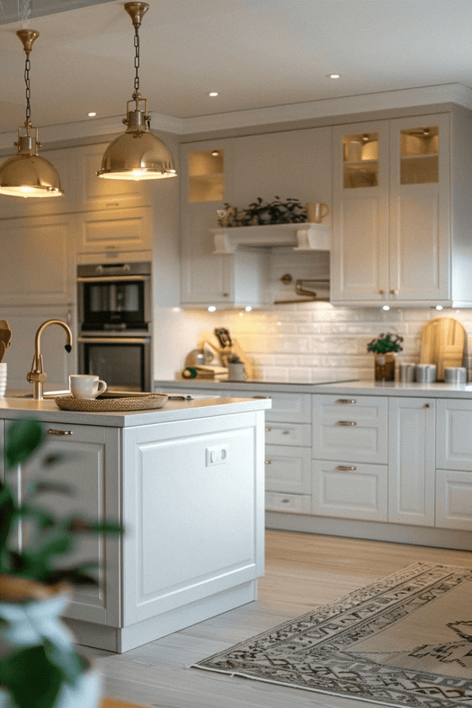 - Layer Lighting – Combine modern pendant lights with under-cabinet lighting for a soft and inviting ambiance.