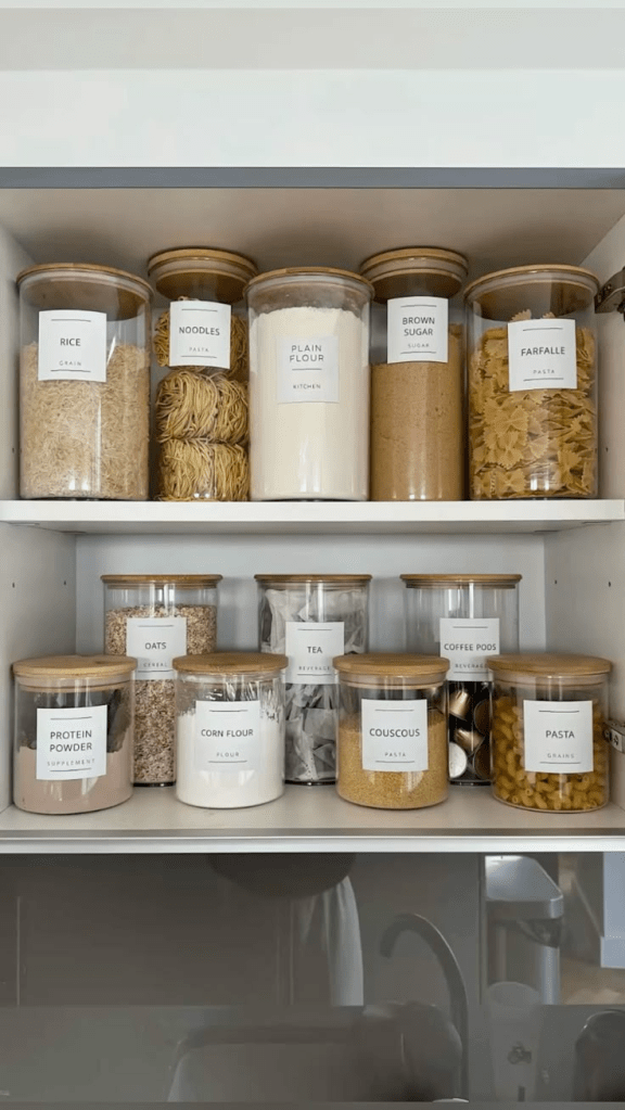 Beautiful and functional, these airtight jars help keep ingredients fresh while looking stylish on open shelves.