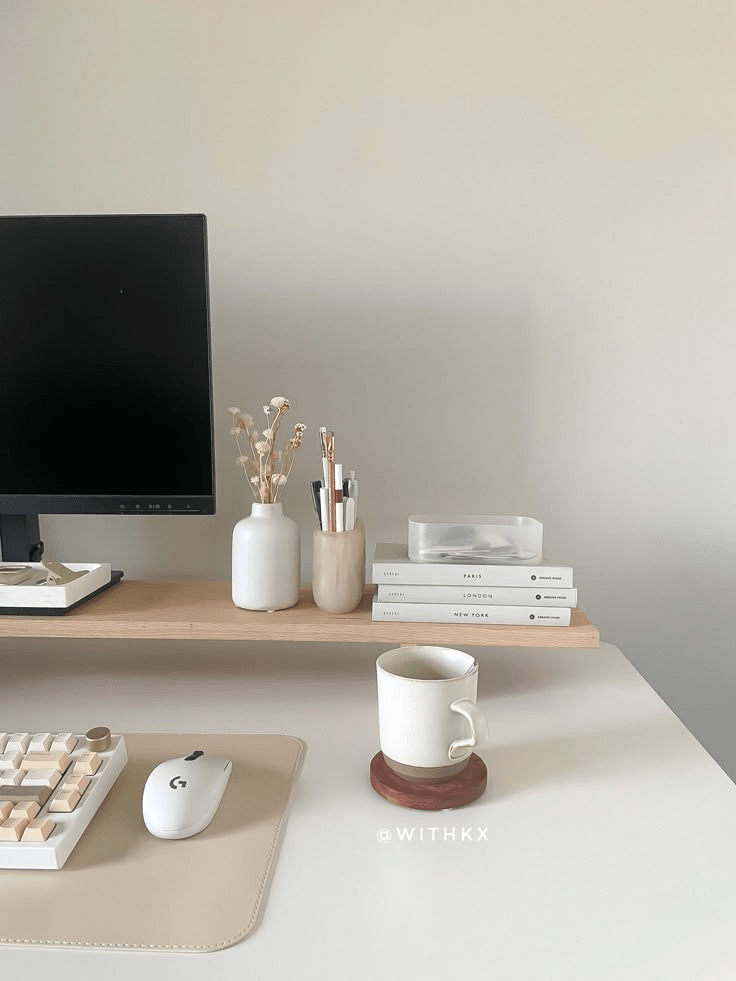Raise your screen to eye level with a clean-lined monitor riser that reduces neck strain and creates extra space for your planner or keyboard underneath.