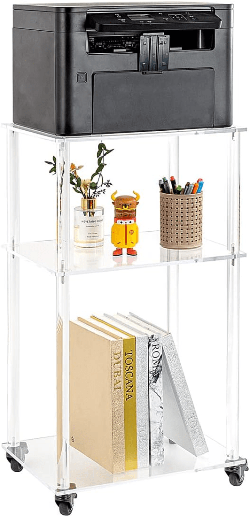 Keep your workspace neat with a multi-tier printer stand that holds paper, extra cords, and accessories. It frees up your main desk area and keeps everything within reach.