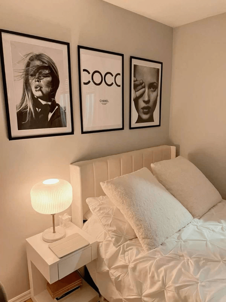 If you’re anything like me, you’re always dreaming of that soft, effortless Vanilla Girl vibe — cozy, minimal, but still so chic. Think a warm beige bed you can melt into, pretty layered pillows, a glowing table lamp for those slow evenings, and a few iconic fashion posters (hello, Kate Moss) to tie it all together. It’s the kind of room that feels like a cozy hug but still looks totally put together — basically, a space you never want to leave.