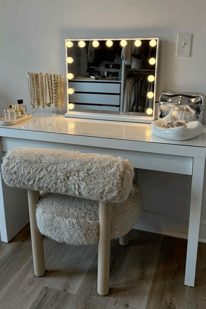 A pretty makeup vanity can make getting ready feel like a small luxury. It’s that quiet moment in the morning or before going out where everything feels a little more put together. Start with a simple, stylish vanity or desk that gives you enough space to breathe. A Hollywood mirror adds soft, flattering light that makes the whole setup feel warm and inviting.
