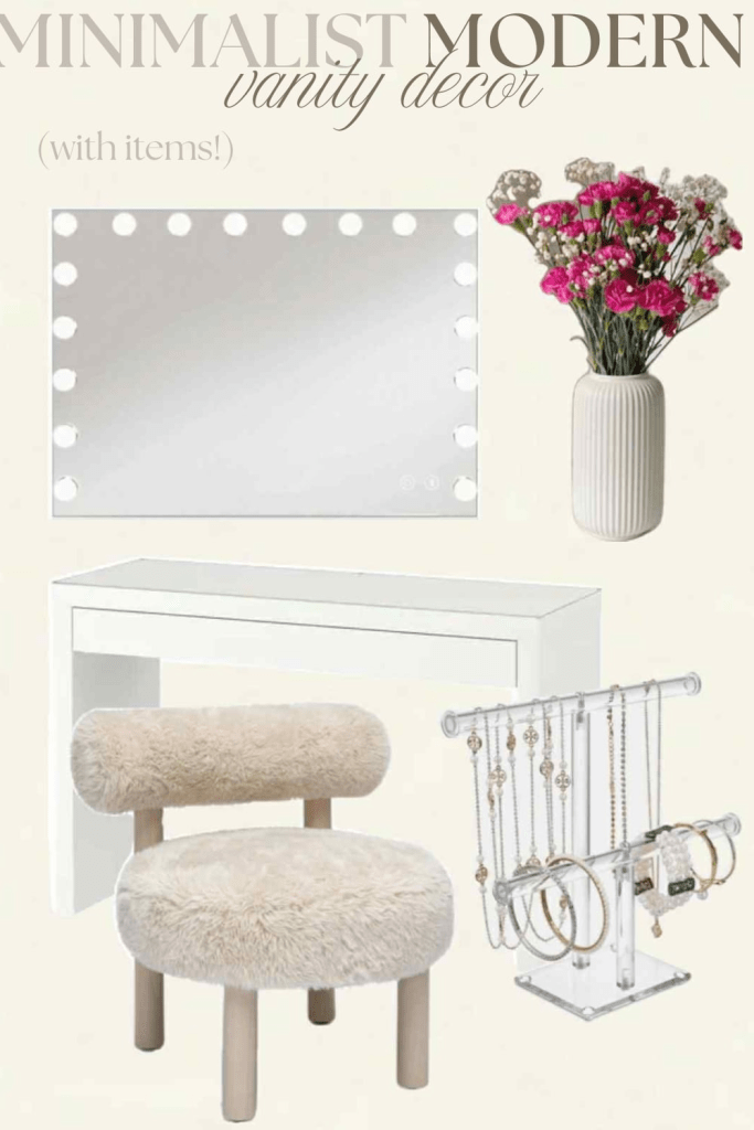 Add a cozy accent chair that feels comfortable to sit in, and use a jewelry holder or small tray to keep your everyday pieces close. A vase with fresh flowers, a softly scented candle, or a favorite perfume bottle brings life to the space and makes it feel personal!